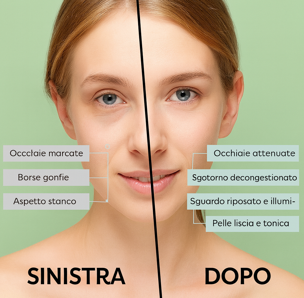 Grazie alla sua formula a base di Aloe Vera, collagene ed estratti vegetali, questo trattamento idrata in profondità, leviga istantaneamente e riduce visibilmente occhiaie e borse sotto gli occhi.
